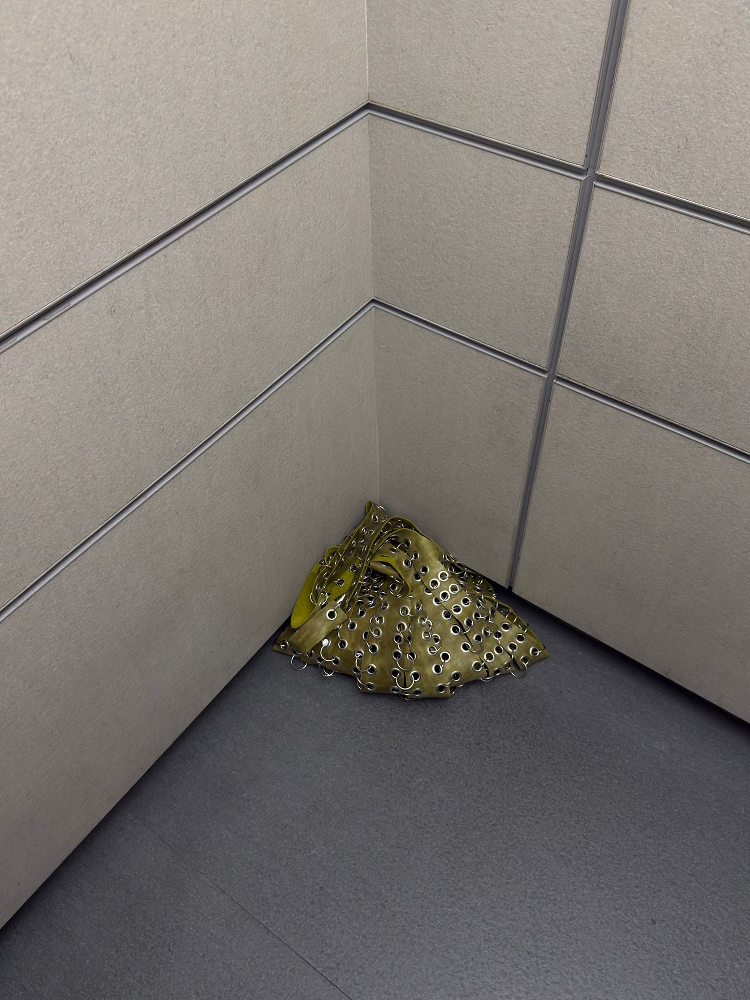 Crafted from leather panels and finished with metal loop details, this tote redefines structure through repetition. The hand-linked silver hardware gives it a sculptural edge, while the slouchy form allows for everyday ease.