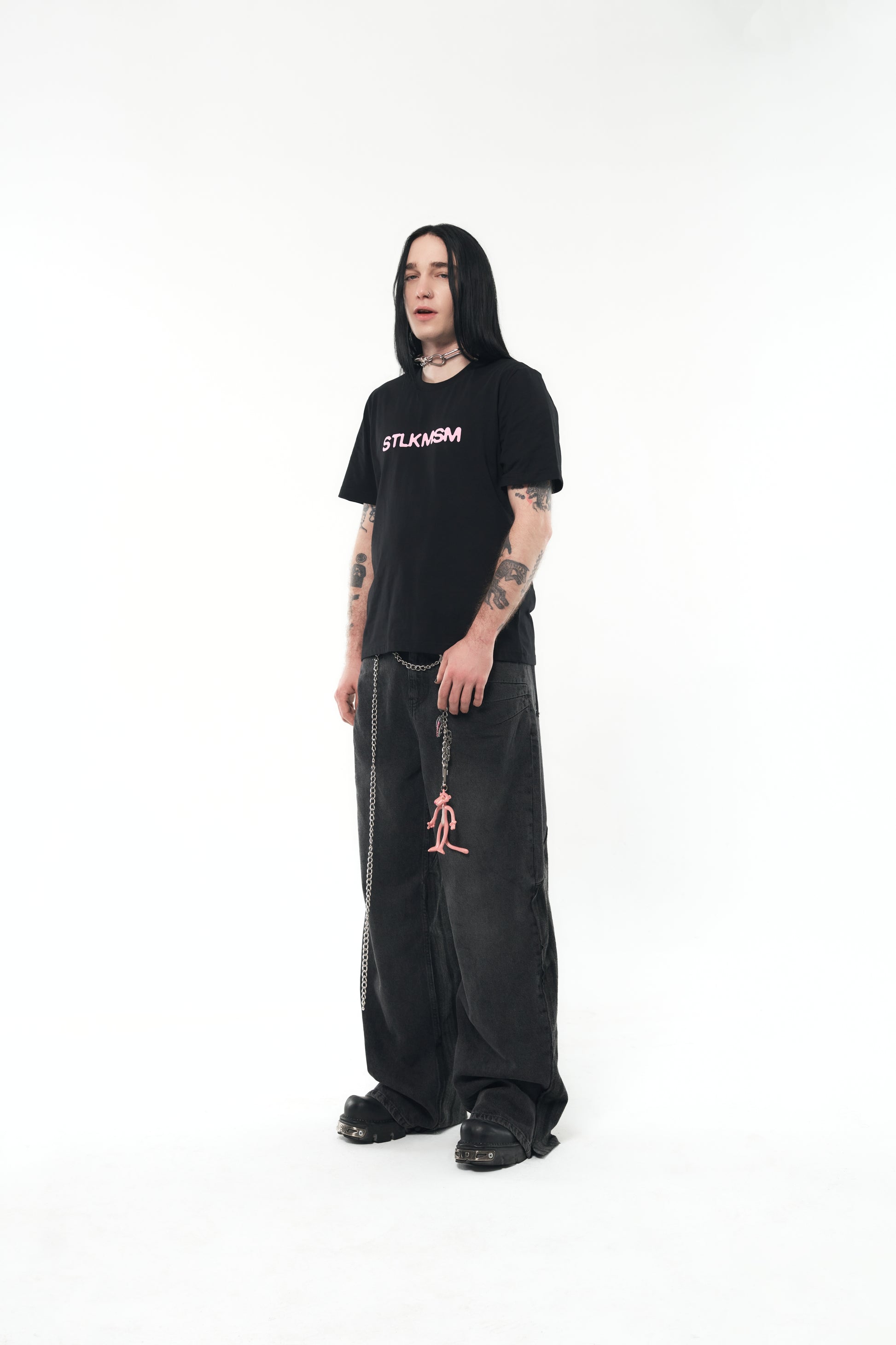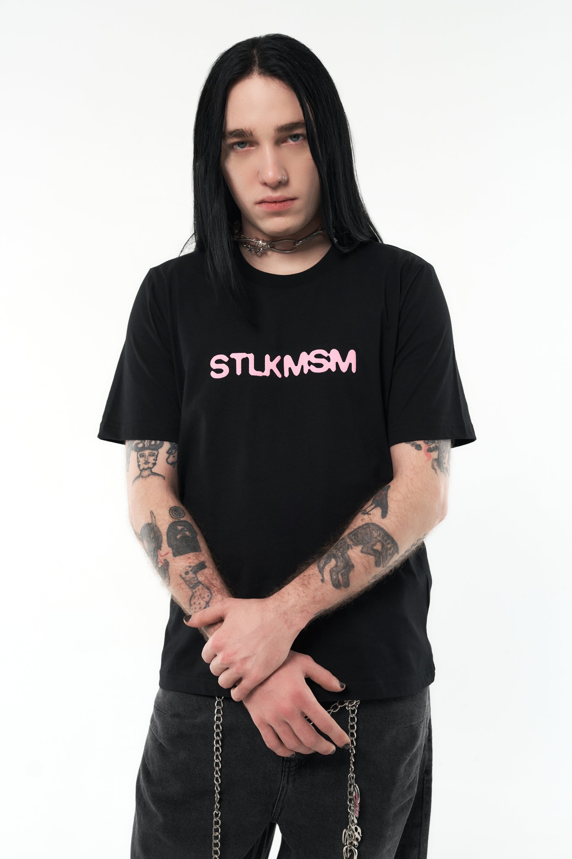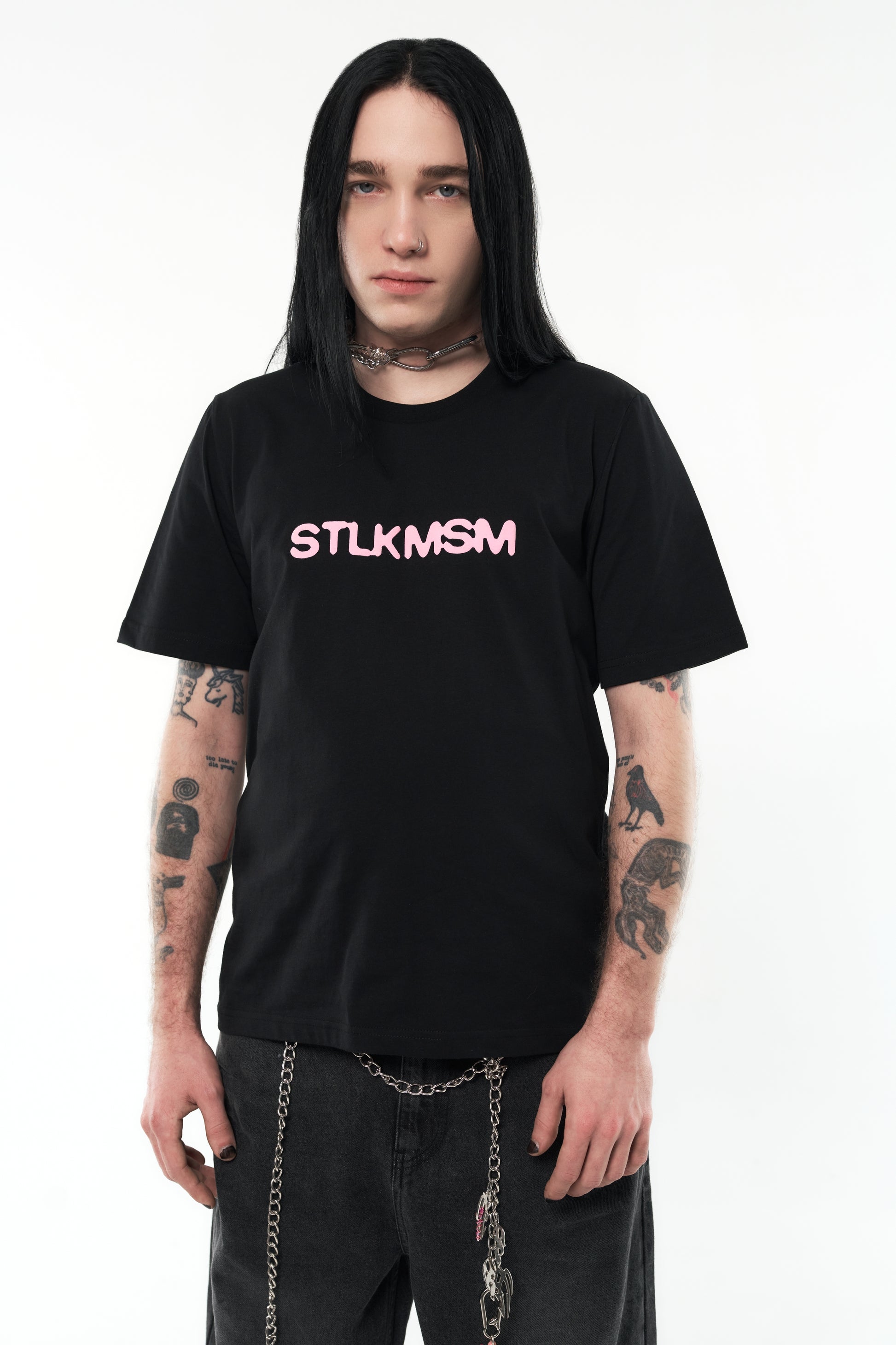 Black 'STLKMSM' t-shirt with pink puffy print Made from 100% cotton.