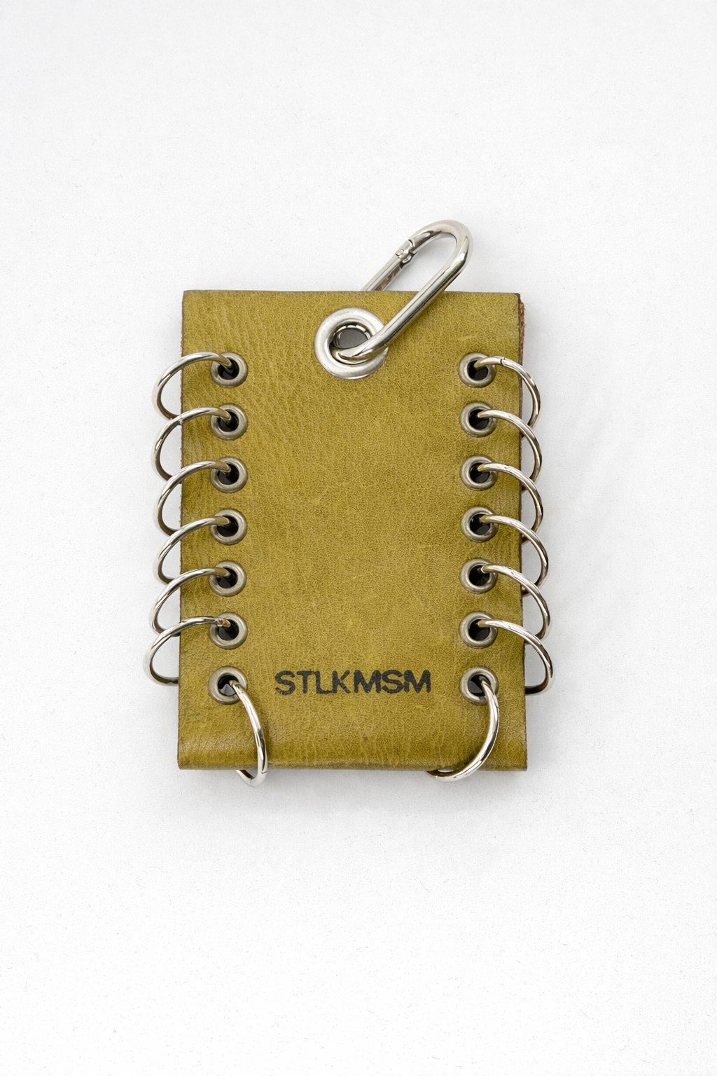 Crafted from durable leather, this card holder breaks away from traditional stitched constructions.
